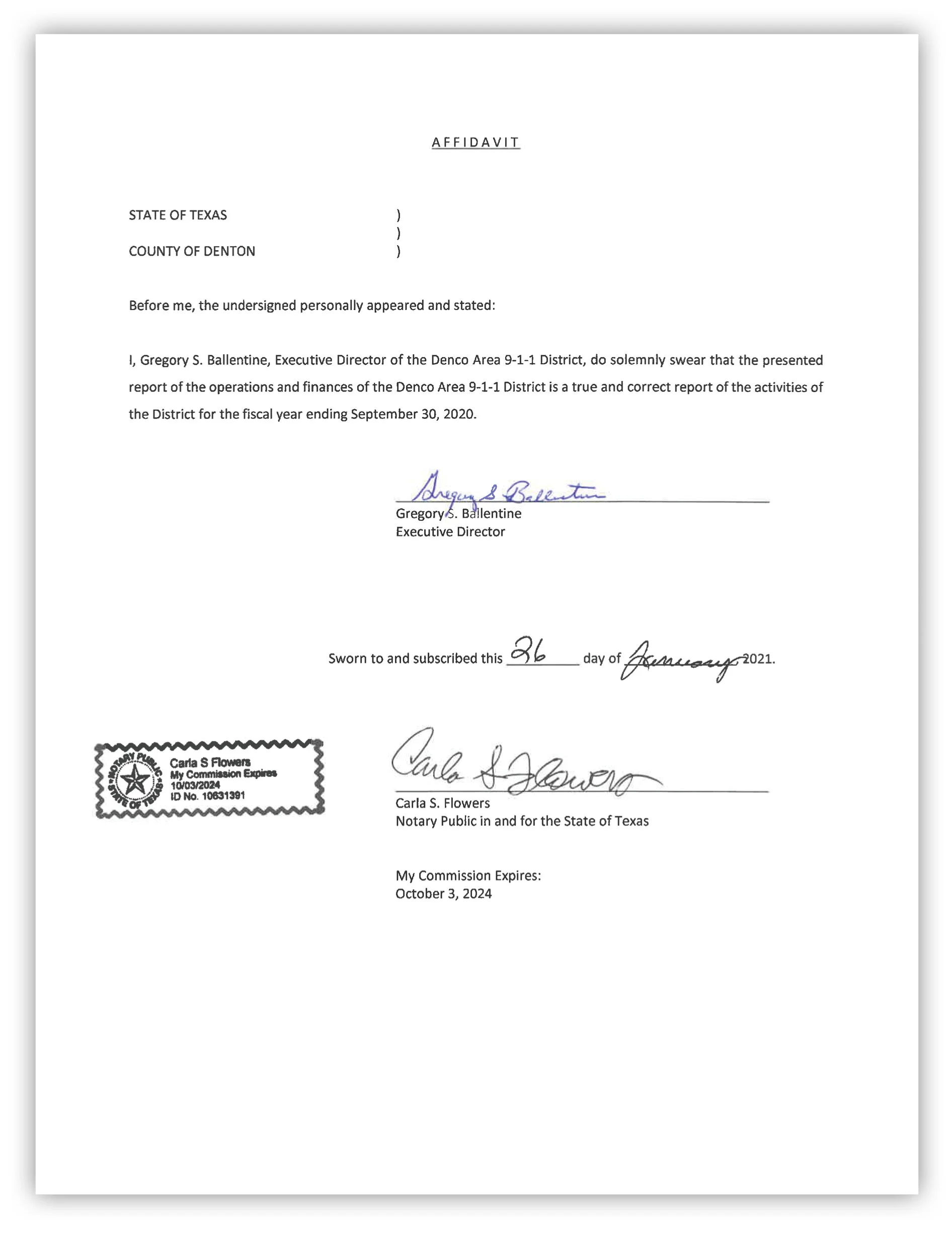 Sworn affidavit of fiscal 2020 operations and financial statements